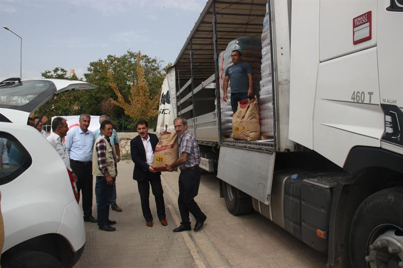 Dağıtıma katılan İl Müdürümüz Orhan KAYA; İlimiz genelinde hayvancılık faaliyetiyle uğraşan üreticilerimizin kaliteli kaba yem üretimlerini gerçekleştirmeleri amacıyla İl Müdürlüğümüzce, Bakanlığımız TİGEM (Tarım İşletmeleri Genel Müdürlüğü) tarafından üretilen yem bitkisi tohumluklarından 12.5 ton Macar Fiği tohumluğu ve yapılan demonstrasyon çalışması neticesinde ilimiz üreticileri tarafından verimi ve kalitesi kabul gören Ankara Tarla Bitkileri Merkez Araştırma Enstitüsü Müdürlüğünün tescillemiş olduğu 50 ton TARM-92 Arpa Çeşidi tohumu %50 çiftçi katkısıyla temin edilerek ilimizde toplamda 178 çiftçiye dağıtımını gerçekleştirdiklerini belirtti.