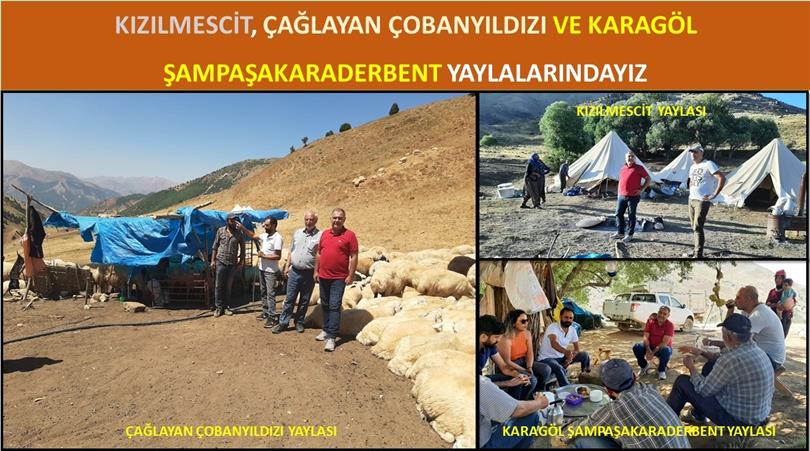 Mera/Yaylaklarda küçükbaş üreticilerimize ziyaretlerimiz devam ediyor. Bu kapsamda 10.08.2022 tarihinde Pülümür Çağlayan Çobanyıldızı, Karagöl Şampaşakaraderbent ve Kızılmescit mera/yaylaklarında faaliyetlerine devam eden küçükbaş üreticilerimizi ziyaret edip önümüzdeki yıllarda göçer faaliyetlerini kolaylaştırmak ve mera kullanımını daha verimli hale dönüştürebilmek için fikir alışverişinde bulunduk.